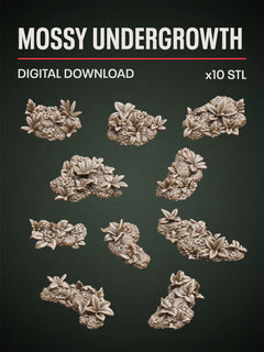 The Mossy Undergrowth STL pack provides lush tropical forest floor micro vegetation as 3D printable basing components.