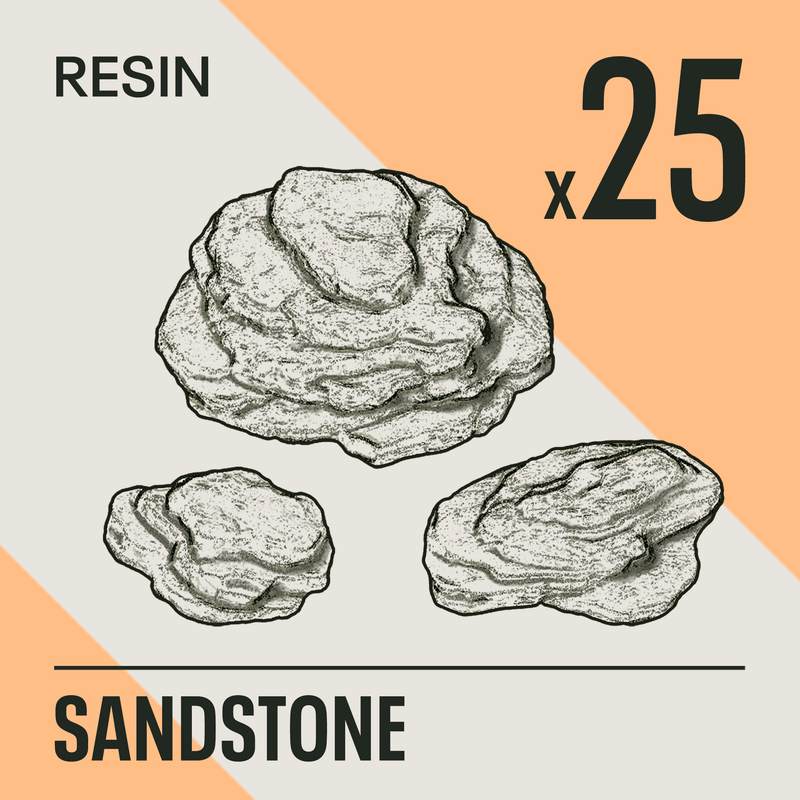 The Sandstone resin miniature basing pack provides an assortment of weathered rock formations to create desert canyons and weathered wastelands.